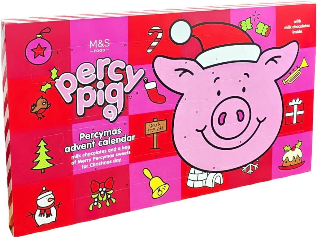 Get ready for a very merry countdown with Percy Pig!This charming advent calendar from M&S features festive illustrations...