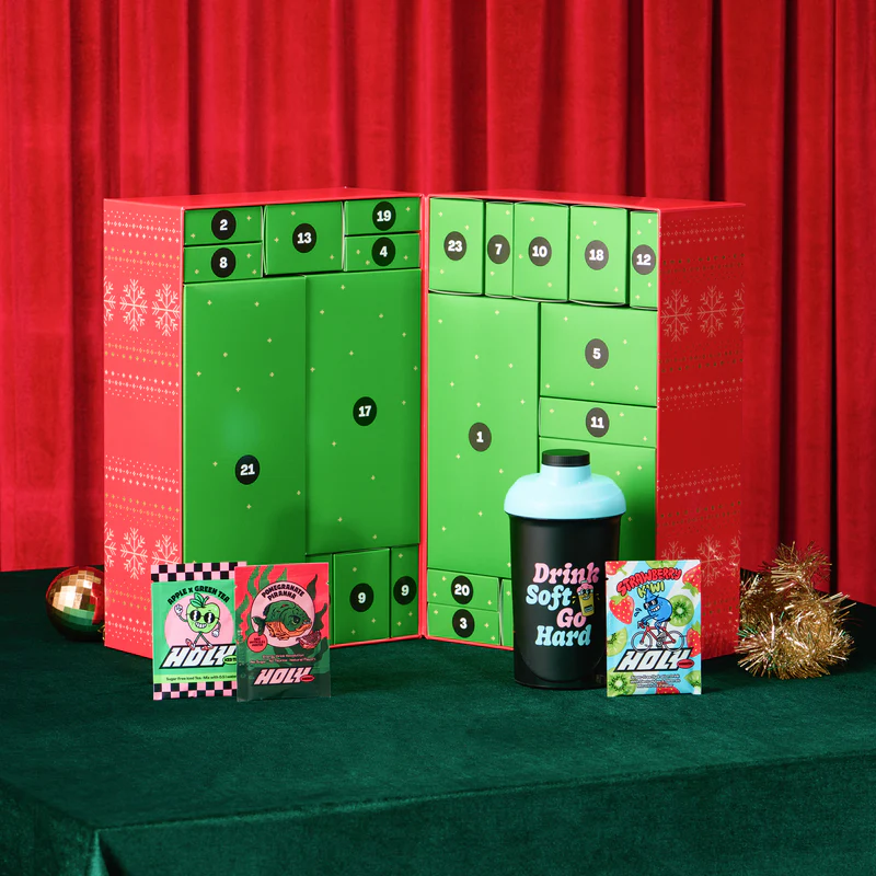 The HOLY Advent Calendar Deluxe takes holiday countdowns to the next level. Behind 24 doors you’ll uncover over 115 drinks, a full-size tub, brand-new mystery flavours, and plenty of surprises to keep things exciting all December long. To make it even better, the set includes two shakers, exclusive limited-edition merch, and a total value of £260.