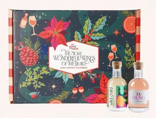 Each mini bottle gives you a 6oz pour you can share with a pal or savor solo. It’s the perfect advent mix with 14 reds, 7 whites, and 3 rosés.