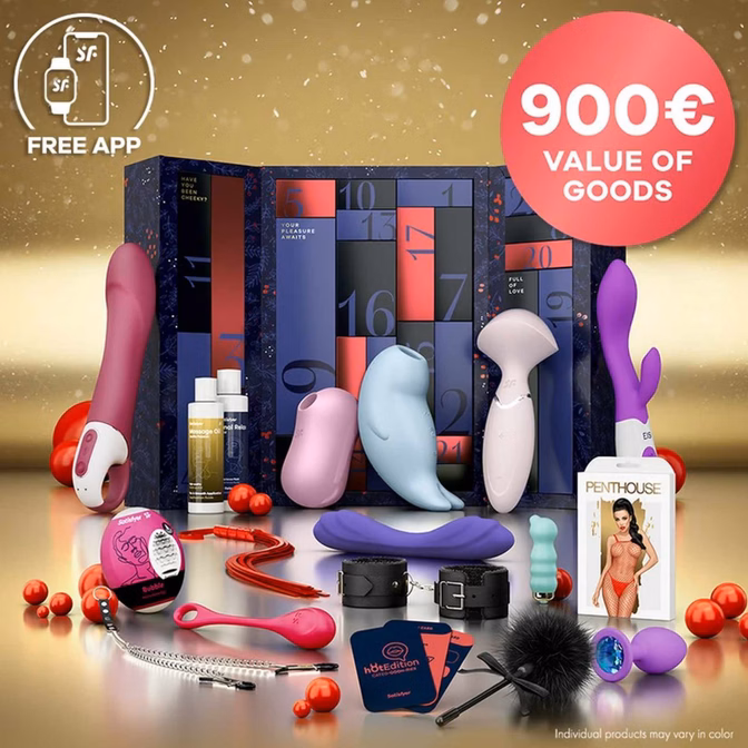 Let’s talk about what’s inside the Satisfyer Premium Advent Calendar 2024: It features six amazing Satisfyer toys! Need a break from holiday craziness? The Satisfyer Mini Wand-er is your go-to for that much-needed relaxation. This compact massager targets tension with powerful vibrations and is waterproof, making it great for bath time.