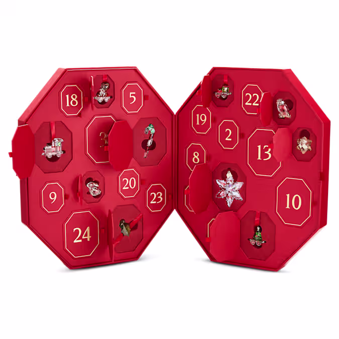 Decked out in festive red packaging and tied with a cute bow, this limited-edition calendar for 2024 is packed with surprises behind each of its 25 doors. This year, you’ll embark on a snowy adventure with Swarovski’s holiday train.
